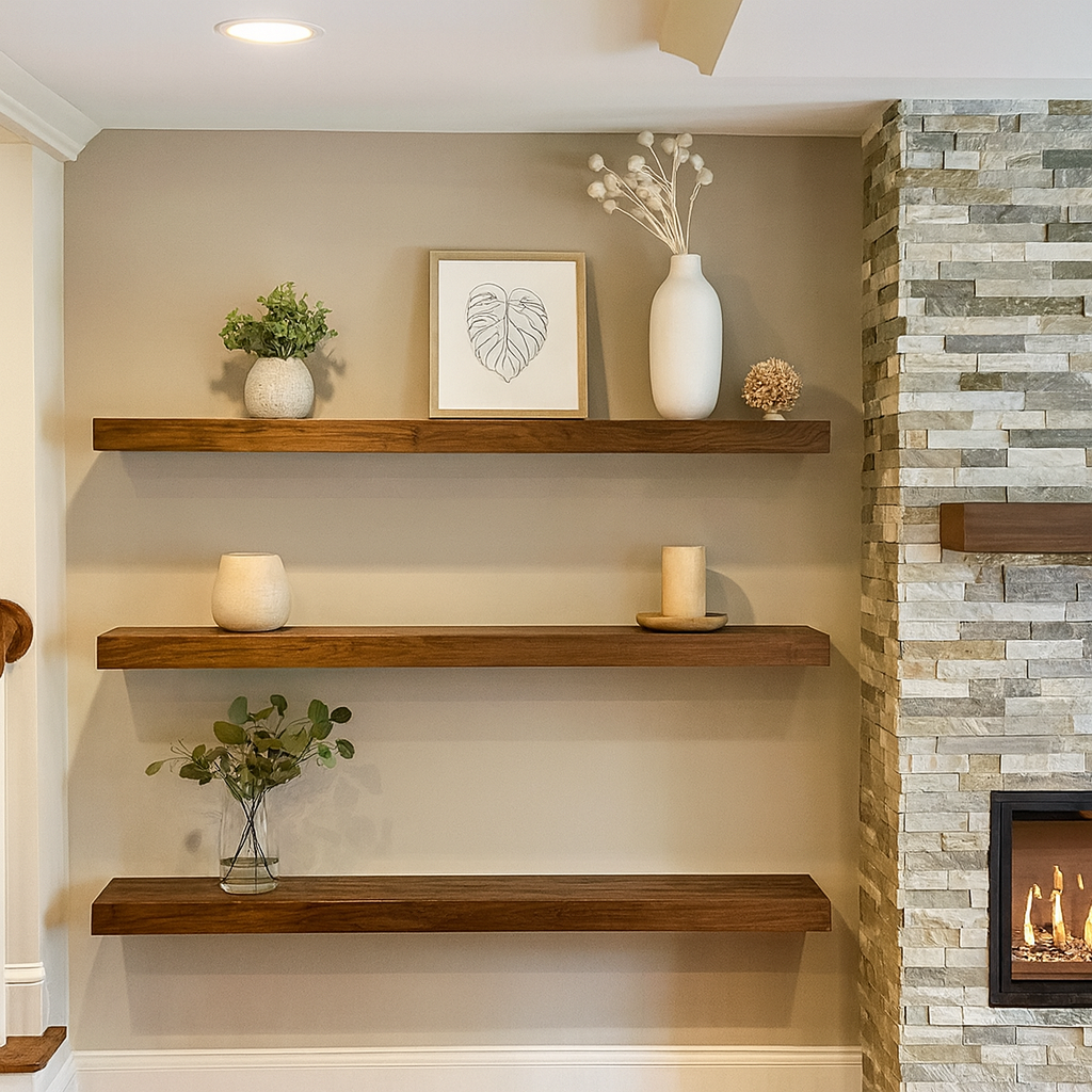 Perfect as a floating fireplace shelf, this mantel works beautifully over fireplaces, as a wall-mounted beam, or as a decorative statement piece in modern, rustic, farmhouse, or transitional interiors.